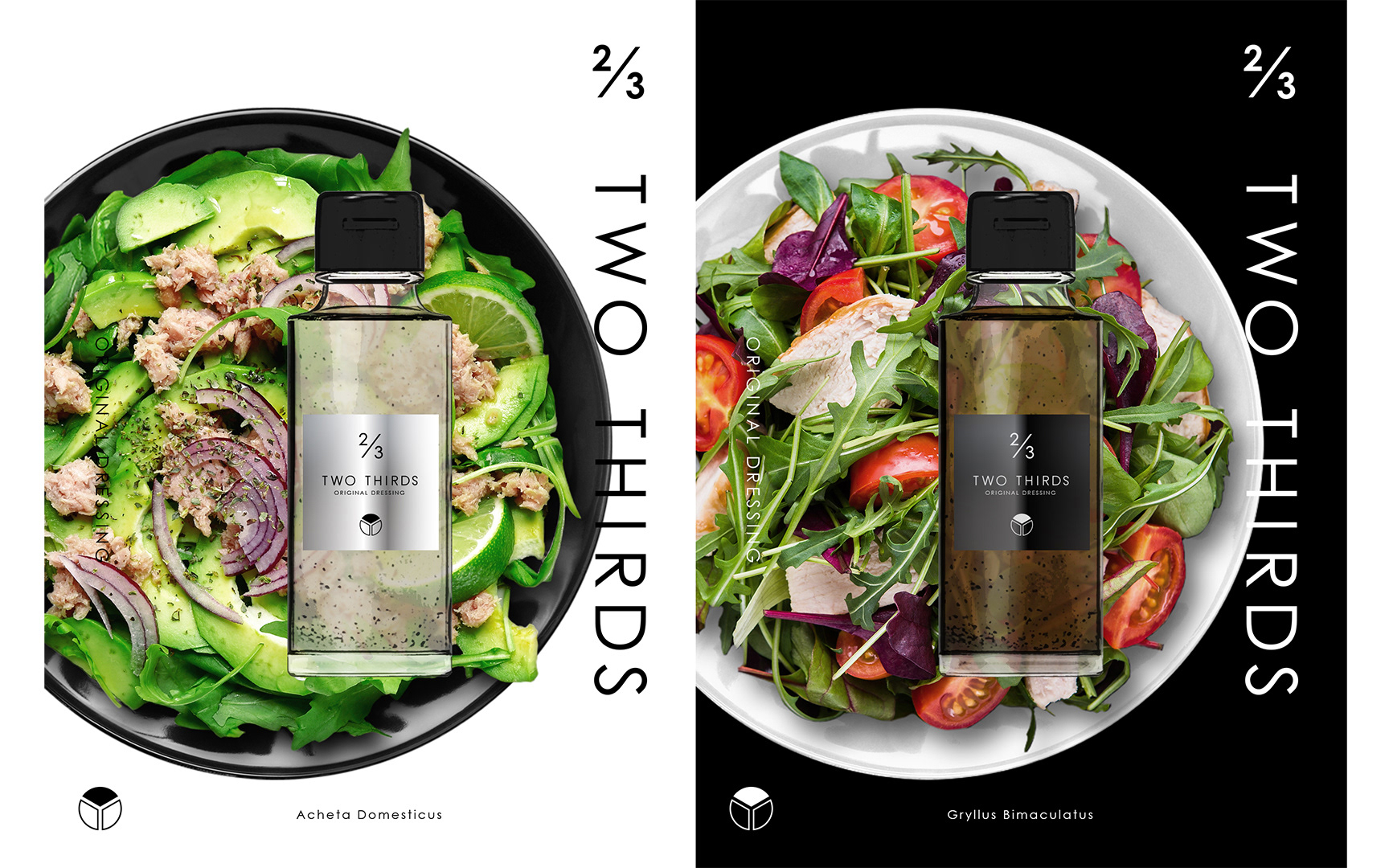 昆虫食界のイノベーターである篠原祐太さん率いるチーANTCICADA(アントシカダ)と木本考紀さん率いるKokuhaku Inc. が立ち上げた昆虫ドレッシング「TWO THIRDS」のブランドデザインしました。