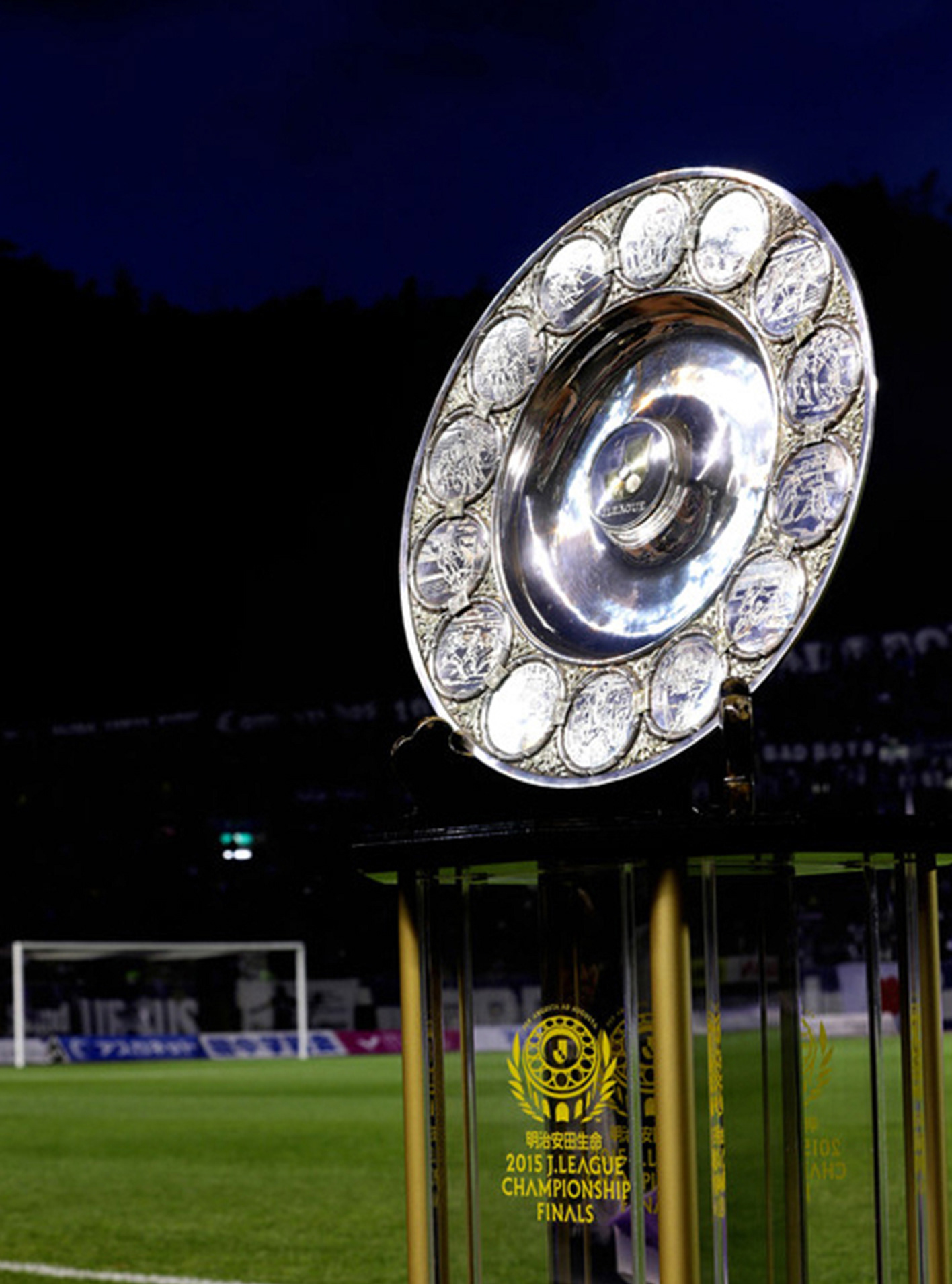 Meiji Yasuda Seimei J-League Championship Champion Petri's display. Designed to reflect the pitch with transparent and mirror materials.
