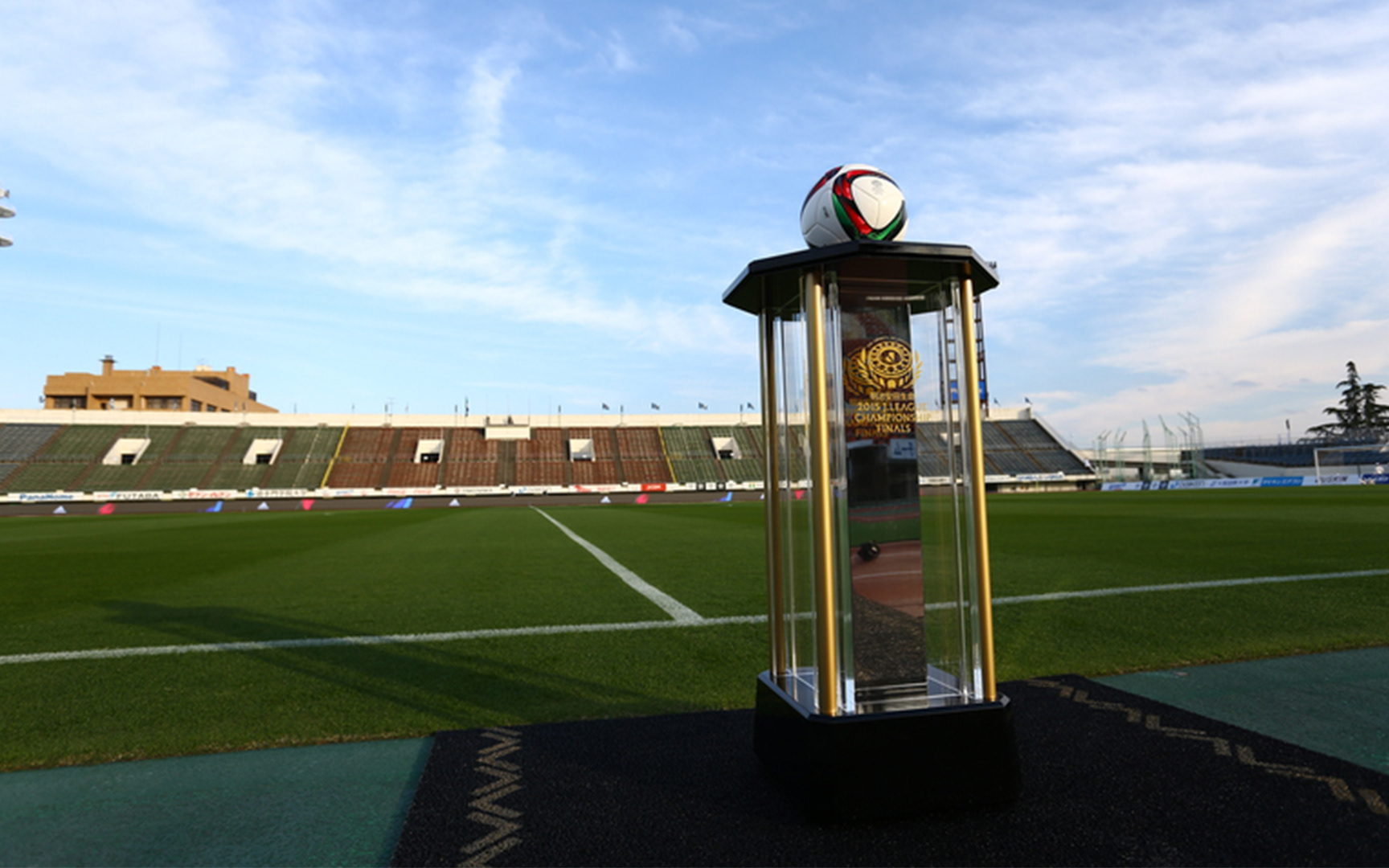 明治安田生命 Jリーグチャンピオンシップの優勝シャーレの展示台です。透明素材とミラー素材でピッチが映り込むようにデザインしました。