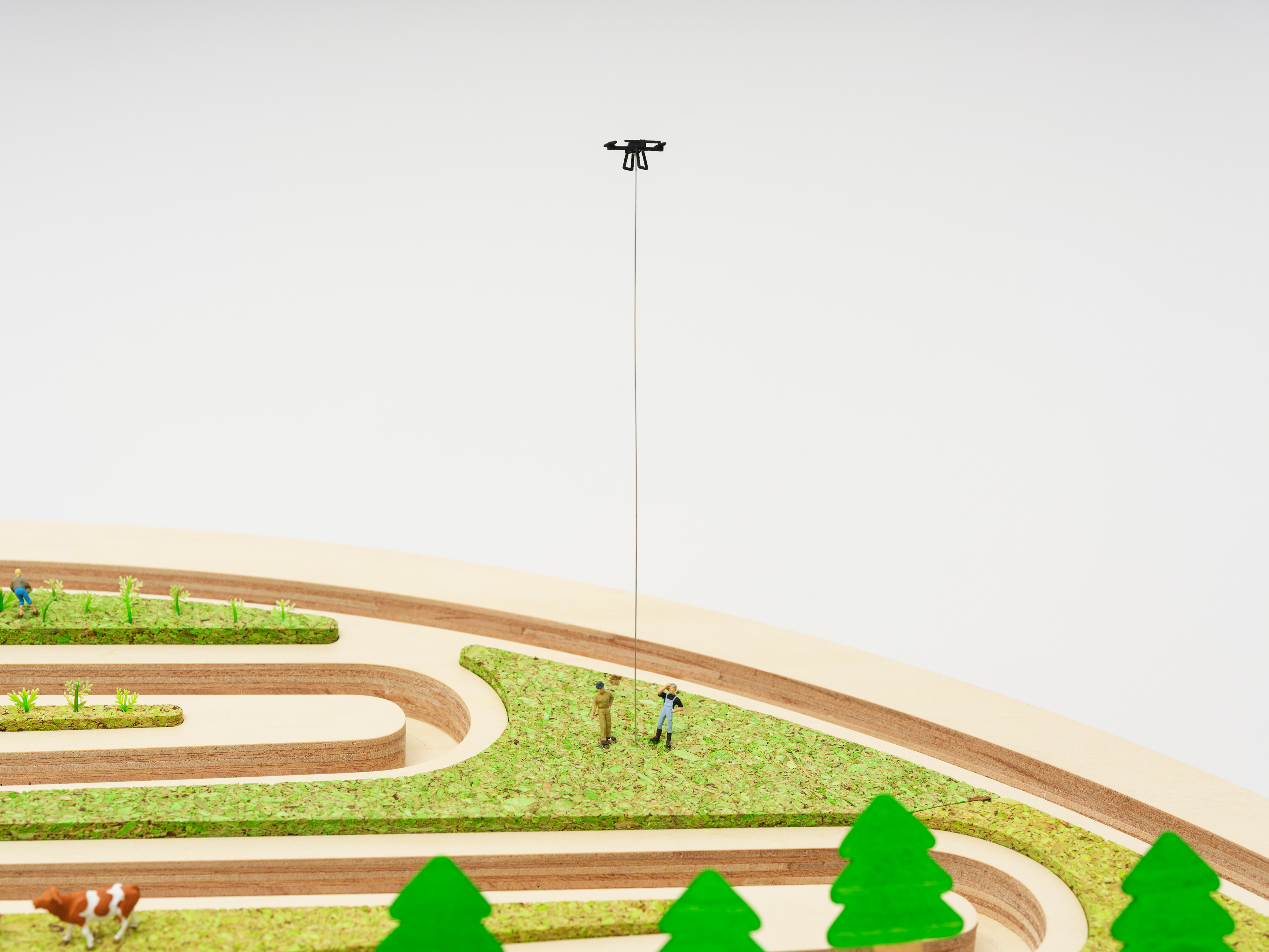 矢崎総業と高知県梼原町の協業にインスピレーションを得て、両者の活動の中で生まれた素材を用いたジオラマとルートを走る球体で、森林、水、人の好循環を表現しています。