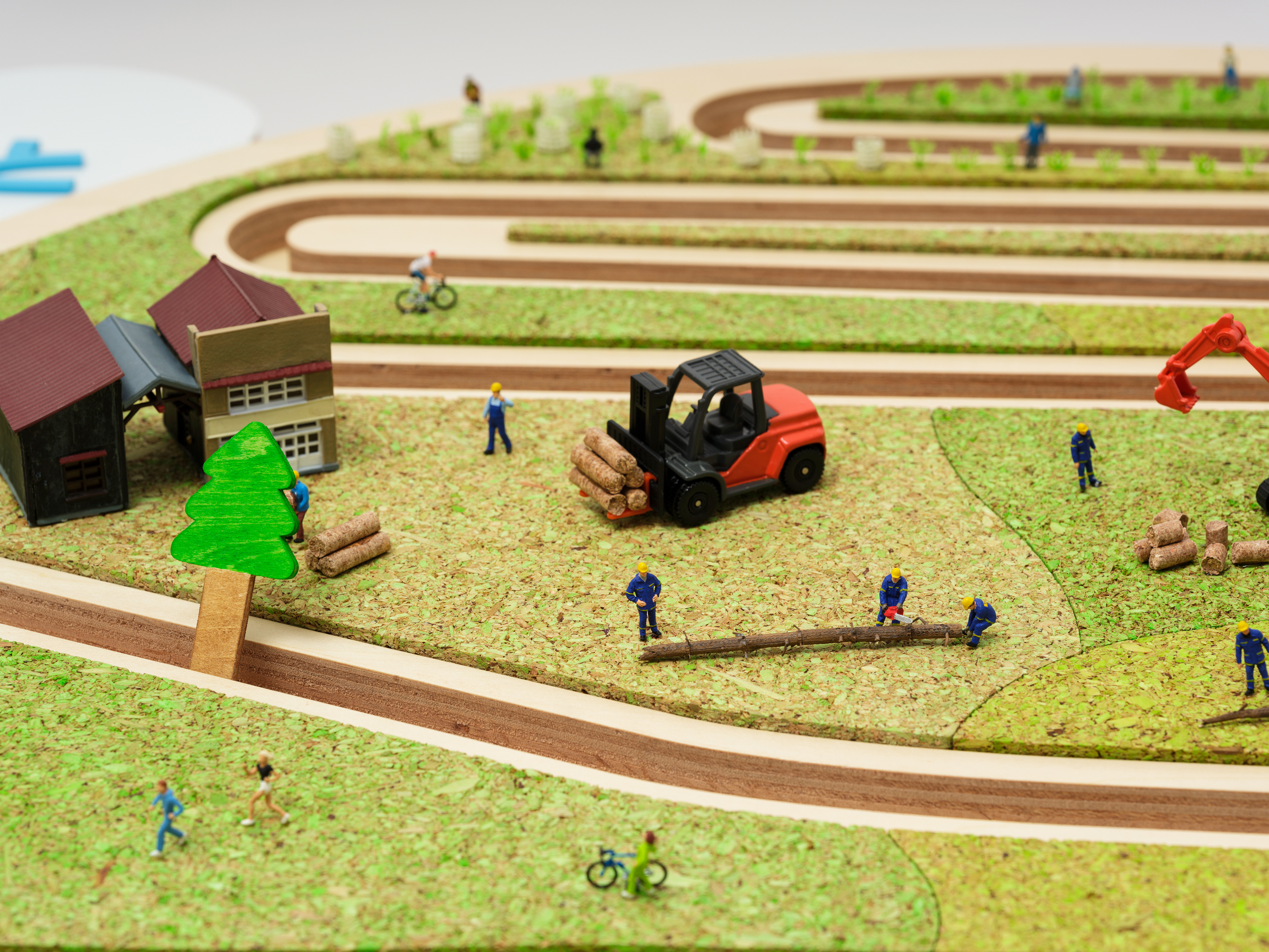 矢崎総業の森林資源循環の取り組みをテーマにした展示品の制作を担当しました。